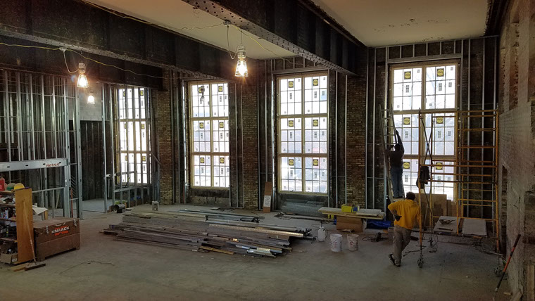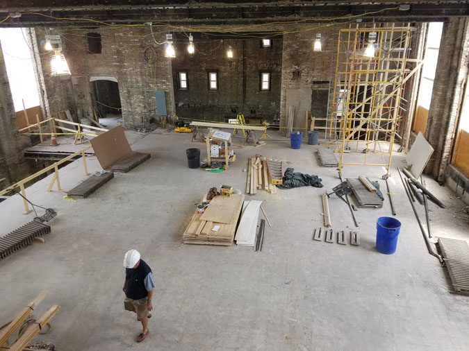 First built as a Masonic Temple – this adaptive reuse includes restoration of the brick and steel structure and reestablishes the original large sanctuary window openings. Existing historic light fixtures will be retrofitted with energy efficient lighting, and industrial riveted steel beams will be exposed in the dining room. A new raised seating area will allow views into the fermentation cellar below, and access to mezzanine level dining above.