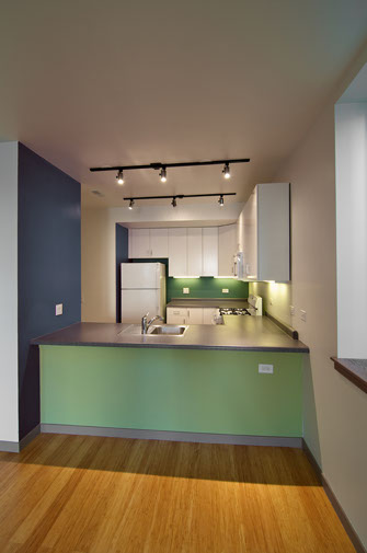 With Chicago East Village Landmark District approval, a neglected historic four unit apartment building on an oversized lot was gutted, the basement underpinned, and the interior completely renovated, deconverting it into three spacious units. An ICF addition housing three new units was constructed on adjacent land to create a total of six contemporary apartments. The addition’s front façade utilizes common brick reclaimed from a garage demolished at the rear yard. The façade sets back from the historic context to preserve a long standing garden.