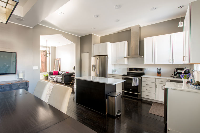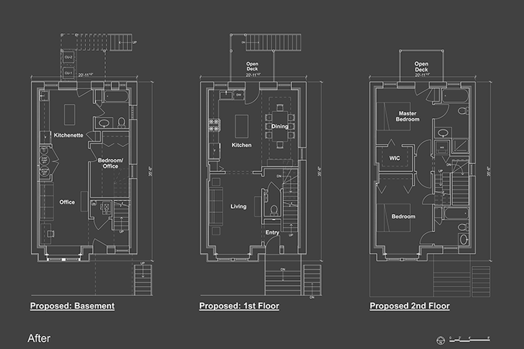 Located in the Pilsen Historic District of Chicago, a vacant and severely distressed three unit apartment building was restored and deconverted into a modern single family home. The small footprint – 729 sq ft per floor – provided an opportunity to create a unique vertical urban home.